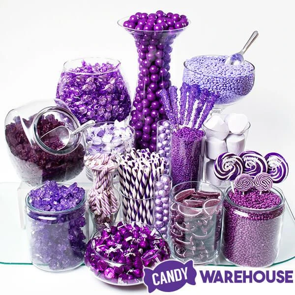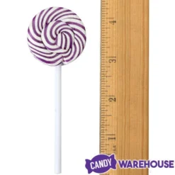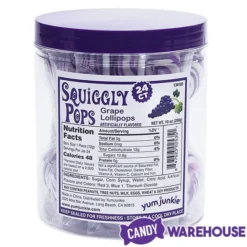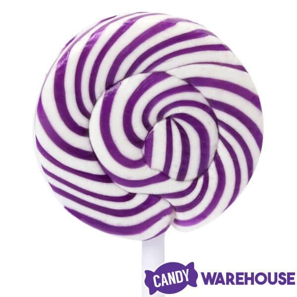 Jar contains 24 individually wrapped Squiggly Pops Petite Purple & White Swirled Lollipops.